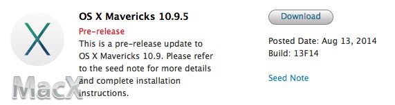 苹果今天向开发者发布了 Mavericks 10.9.5 最新测试版,编译号为13F14。距离上一个 OS X Mavericks 10.9.5 测试版(13F12)仅仅过去一周时间。苹果在一个月前向用户发布了 OS X 10.9.4正式版。