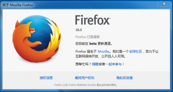 Mozilla 今天将Mozilla Firefox 36.0 Beta送上了FTP服务器,新版采用Gecko 36作为内核,需要注意的是目前Firefox 36 Beta版分支还没有出现Windows 64位版本(从nightly版本上看目前性能依然没有调整到良好状态,预计Firefox 37会发展出稳定的产品),如有需要尝试的可以选用Developer Edition版本。预计正式版的Firefox 36将在2月中旬左右发布。