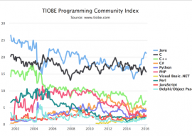 Java编程语言在2014年年底指数出现攀升,一直持续到上个月。Java在2015年TIOBE编程语言指数增长中显然有一些挣扎,并在2016年继续挣扎。这种增长不同于其它编程语言,如Python和C++出现的短期内增长。TIOBE 编程...
