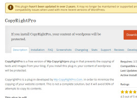 wordpress使用CopyRightPro来防止网站内容被扒窃,其实怎么说呢?通过这里插件只能屏蔽掉一般访客,稍微有点技术能力的开发者直接秒破。CopyRightPro插件介绍如下:CopyRightPro是一个免费的版本WP-Copyrightpro...