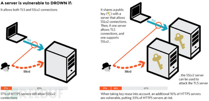“即便是服务器仅仅启用了SSLv2协议,而且也没有合法用户使用过这一协议,但服务器和客户端仍然有可能遭受到DROWN攻击。”