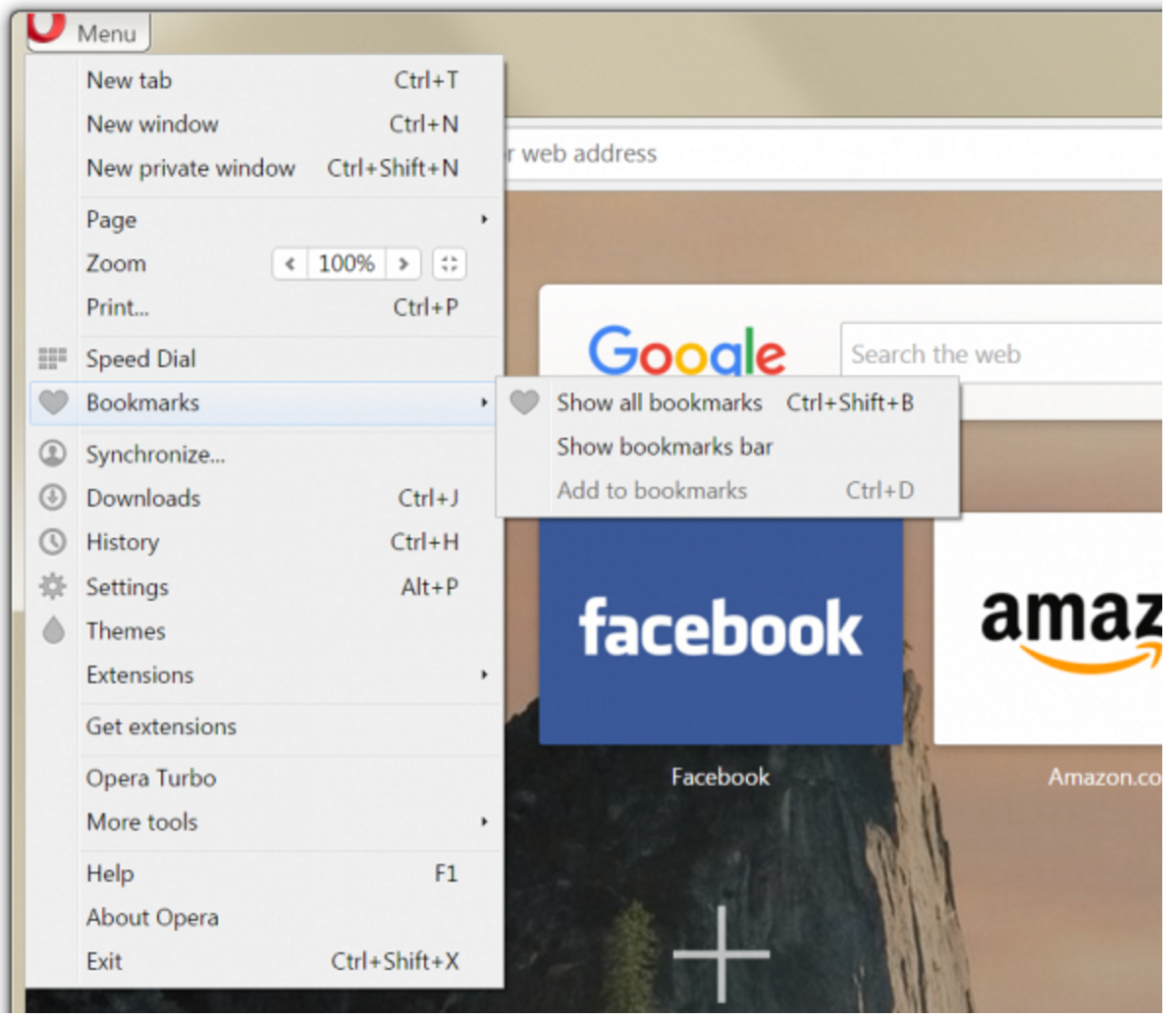 对Opera菜单进行了小幅清理。书签重复的条目已经整合在一起。