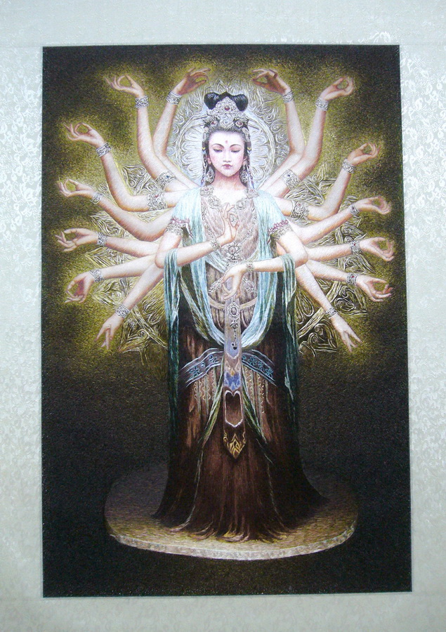 而电脑喷绘绣,只需把绣的图样打喷在绣布上,绣工就可以比对着布上的色彩图案用色施绣了,不以绣派为限,不管何种画面,都可以较为方便,快捷地绣制作品。大大降低了劳动成本,缩短了产出周期,电脑喷绘绣仅用十多年的时间,它就以大刀阔斧的姿态进入刺绣领域,风靡全国各地,深得千家万户消费者的欢迎,同时也为地方及绣娘带来了前所未有的商机和经济回报,既繁荣了市场又致富了一方,它的积极意义令人有目共睹,因而它的快速普及如火如荼,为当代刺绣经济的增长开辟了一条通道,迄今霞光灿烂。(图3、图4 )