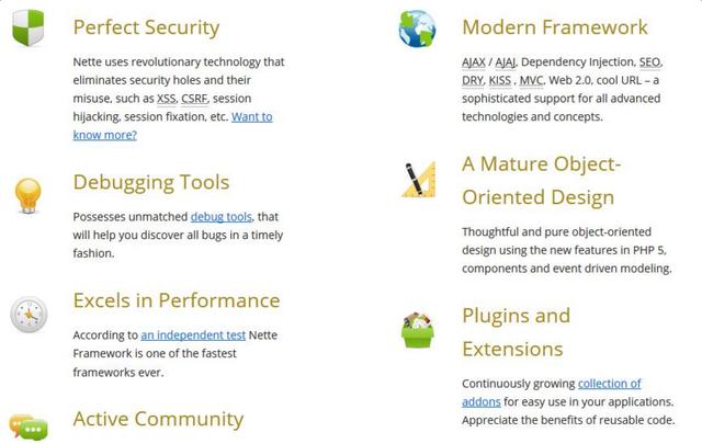 Nette Framework允许开发人员更有效地工作,专注于重要的内容,并使代码更加可读和结构化。 Nette框架让开发人员专注于作为开发人员的创意部分。它的建造是非常可用,友好和喜悦使用。 Nette可理解而高效的语法,尖端的调试器和业界领先的安全功能,让一个写电子商务网站,维基,博客,CMS或任何可以想像的速度比以往任何时候都更好。 Nette框架由主要公司使用,如T-Systems,GE Money,Mladáfronta,VLTAVA-LABE-PRESS,Internet Info,DHL,Logio,ESET或Actum。