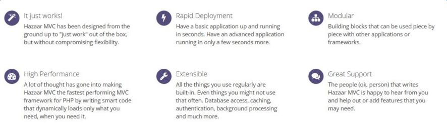 Hazaar MVC是一款高级灵活的PHP 5.3+框架,专为快速开发动态、实时的Web应用而设计。使用Hazaar MVC有以下可能的事情:使基本应用程序在几秒钟内启动并运行。高级应用程序只运行几秒钟。创建可以与其他应用程序或框架一起使用的构建块。
