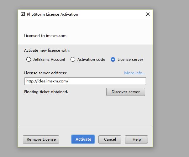 使用方法:激活时选择License server 填入http://idea.imsxm.com/ 点击Active即可。