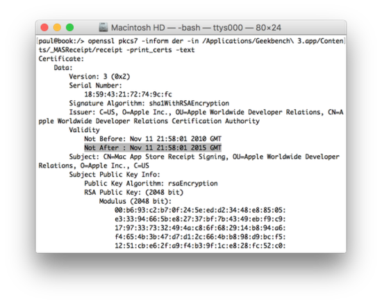 这一漏洞首先被开发者保罗·哈达德发现。主要是因为苹果使用了过期的安全证书去验证应用程序。 随后苹果发布了新证书(有效日期到2035年4月),但这并不能完全解决这一问题。