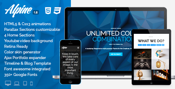Alpine 是现代化专业和灵活的页面视差响应多用途WordPress主题,开发引导的框架非常注重细节。主题可用于任何类型的网站:商业,企业,投资,产品,营销等,您可以直接从后端内修改布局,造型,色彩。