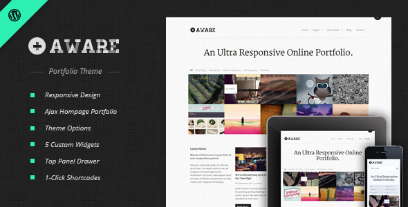 Aware是一个互动的,敏感的组合主题完美的自由职业者,网页设计师,摄影师和摄像师一样。它的用户交互界面的兴高采烈地提高你最爱的组合件。现在,你可以把你的投资组合和你,在你的口袋里。