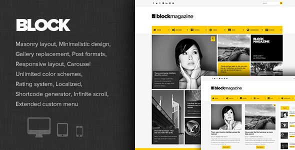 Block Magazine是简洁清新的WordPress博客主题与砖石和充分响应布局。主题是适用于所有的博客或网站,杂志。主题功能和特性都是基于坚实的后端架构。