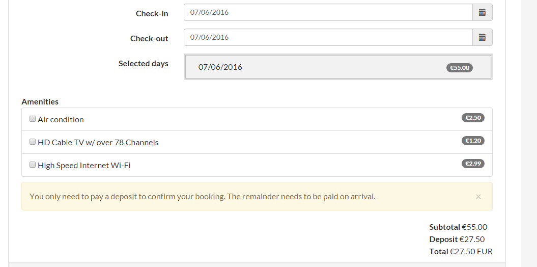 Booki可以让你创建可选的计费项目。如果您的预订要求顾客有一系列可选服务,您可以与相关的成本创建它们。
