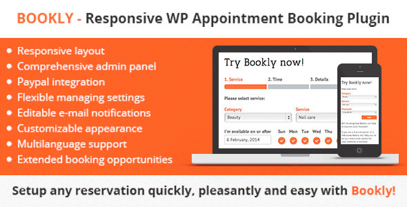 Bookly插件 – 是一个伟大的易于使用和易于管理的预订工具为服务提供商谁想到他们的客户。插件支持范围广泛的服务,通过网站提供的商业和个人服务商提供的保留。设置任何保留很快,愉快和易于使用Bookly!