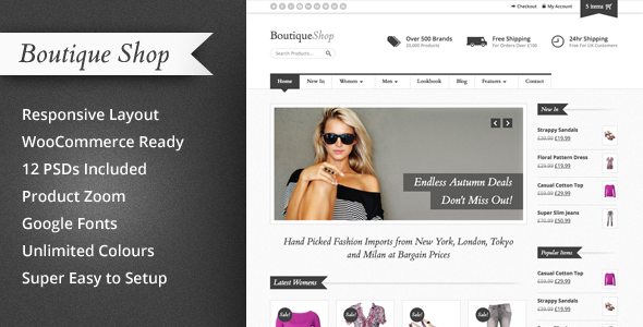 Boutique Shop 是一个电子商务的WordPress主题designed for在线商店销售服装,配件和其他时尚相关制品,需要最小的智能设计