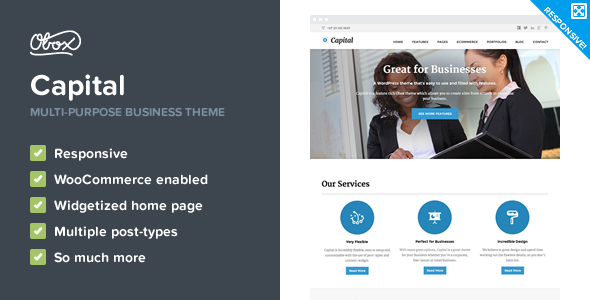 资本有一吨的强大功能,包括12种不同的页面模板,功能卓越的滑块,部分业务,联系人页面,视觉定制,电子商务就绪,盒装和全宽度的布局,网页布局,侧边栏的布局,社会联系的阵列,谷歌字体,自定义文章类型等。