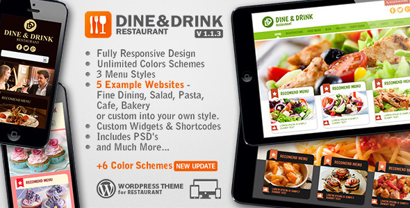 Dine & Drink餐厅响应WordPress主题,适用于任何类型的餐厅,咖啡厅,咖啡厅,面包店,糕点,墨西哥菜,意大利面,比萨饼,冰淇淋,日本,寿司,沙拉等。