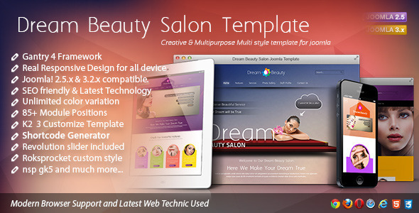 Dream v1.0.0 Joomla模板对于任何一种美容美发网站。