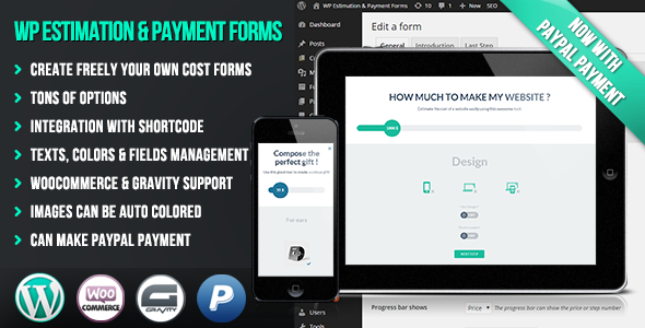 项目成本估算插件,扁平响应式。成本估算或支付形式安装在你的WordPress网站。这可用于估算出售的任何类型的服务或产品的:应用程序,网站,图形,宠物,月球的片段…。或其他任何东西。用户获取其请求的准确估计。最终估计会通过电子邮件发送。