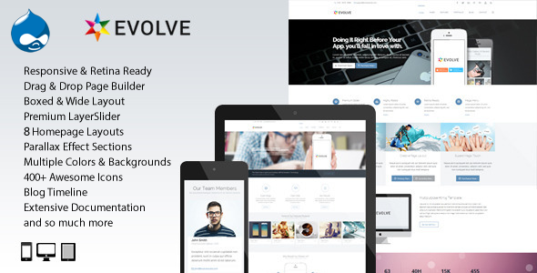 Evolve是一个专业的多用途Drupal主题的任何业务或投资组合的网站。它延伸的主人drupalexp框架提供DRAP拖放行动建立一个页面,充分响应设计和视网膜的准备,在任何设备上的惊艳。它具有一个非常干净和专业的设计是完美的展示你的工作,并有无限的变化和颜色布局的可能性,吨。模板可以用于任何类型的网站:商业,企业,投资,产品,营销,等。