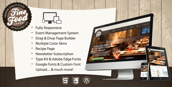 Fine Food是WordPress主题性适合any kind of餐厅、酒店、咖啡、咖啡店、水疗和类似websites that needs a feature丰富和美丽的星辰在线。主要特征是非常重要的,这与超级有用的是,3特征包括事件日历与管理,与Facebook粉丝页面菜单配方和兼容性