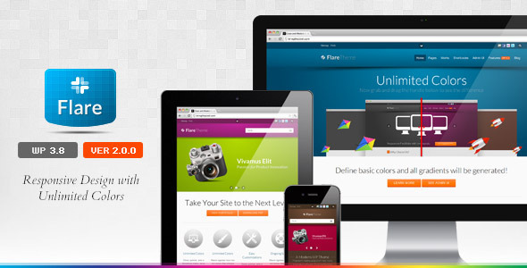 Flare是一个无限的颜色为您的企业网站,组合响应的WordPress主题,或博客。它是灵活的,你可以自定义它与强大的管理面板,这使得你的网站很多重大方面的总量控制。