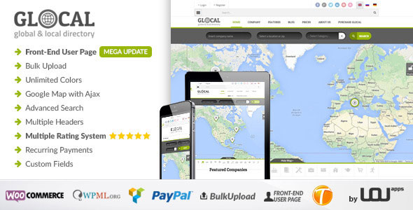 GLOCAL – 目录WordPress主题是一个内容驱动的门户网站,是理想的上市任何实体或活动的全局或局部的基础上。谁能够想象,不到5分钟内就可以安装和开始运行你自己的目录只58美元!嗯,这不再是一个承诺,这是一个事实;所以,跳到船上,并成为全球本地化社区的一部分