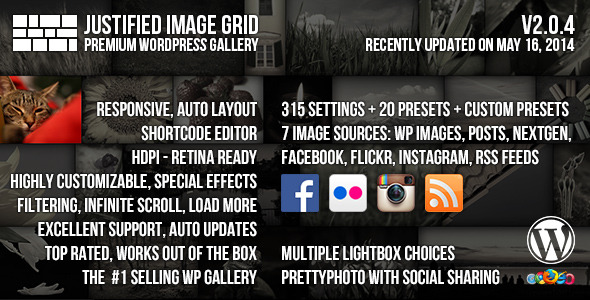 这个敏感的WordPress插件将你的缩略图画廊为一个合理的网格使用jQuery,Flickr和谷歌图片搜索。让你的画廊,站在一个引人注目的,独特的新方法!取代标准的WP画廊[图片]为[ justified_image_grid ]的新功能和许多选项。WordPress管理画廊和这个插件将显示。