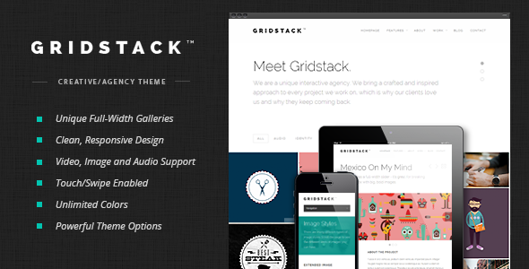gridstack组合是独特的和现代的主题,艺术家和机构,freelancers。一个额外的宽和视差式的媒体,这是一个完美的照片40,图片和视频,音频。
