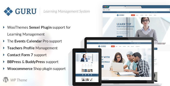 Guru是一个功能强大的学习管理系统(LMS)的WordPress主题中有效地使用WordPress,唤醒,BuddyPress,WooCommerce,事件日历,WPML,邮件黑猩猩。本主题提供了用于创建在线课程,可怕的特点的教师简介,扩展用户配置文件,课程管理,问答系统,视频托管,排名或评分系统,问题跟踪系统,附件,病程的进展,WooCommerce一体化,BuddyPress,事件日历,WPML支持和更多的。开始在线教学,构建培训网站。