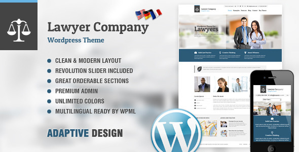 律师事务所网站主题WordPress的主题是未来具有内置HTML5和CSS3的新鲜现代的设计。它的设计在企业风格适用于任何公司或企业。它采用了可以在任何网页上使用广泛的令人印象深刻的多层滑块。主题具有自适应设计,方便在桌面和移动电话使用。