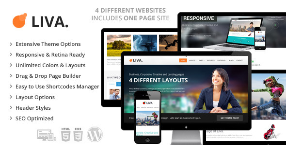 Liva是一个响应(台式机,平板电脑,手机……WordPress主题)简单,干净的和专业的主题。它有独特的网页,可怕的幻灯片,独特的颜色变化。易于定制和全功能的设计。本主题适用于公司,企业,博客和组合。在几分钟之内创建优秀的网站或博客!