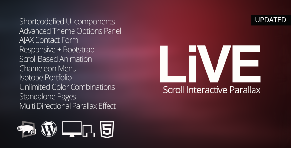 Live是一个令人震惊的独特的互动创意视差主题与使用引导程序框架2.3版本内置了充分响应布局的无限前景+背景视差层。视差层可以有无限的垂直及水平滚动的效果!