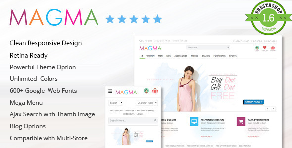 MAGMA响应模板与时尚的Prestashop Prestashop┊强大的管理选项。