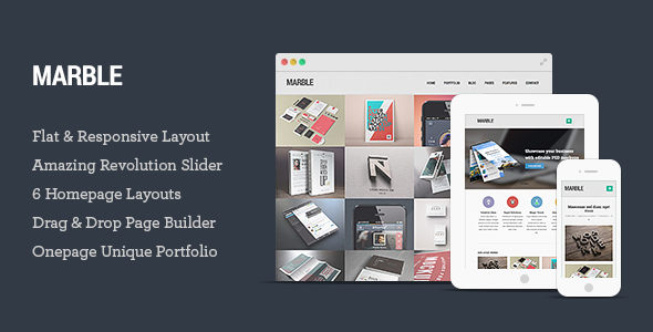 Marble是一种扁平,响应,WordPress主题推特引导建立独特的组合。它包括6个不同的网页布局和2个博客。大理石将为艺术家,摄影师,创意机构,数字工作室,个人自由是有用的,以及什么样的企业老板,想展示他们的投资组合很漂亮。因为它是敏感的,布局将适应不同的屏幕尺寸,这将使你的网站有任何设备,如智能手机兼容,平板电脑或台式电脑。4高级脚本中包含的总价值52美元,你将免费获得这一主题。
