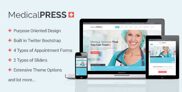 MedicalPress是一种优质的WordPress主题为健康和医疗网站。这是一个非常适合的主题为医生,牙医,医院,诊所,医生和其他类型的健康和医疗相关机构。它的目的导向的设计,反应灵敏的布局和特殊功能来管理预约的形式,设施,服务,医生,库项目,推荐,常见问题解答,新闻文章和页面。
