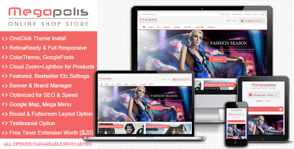 “Megapolis ”–是优质的响应与视网膜准备Magento的主题与干净,现代和优雅的设计。它被设计在用户体验和可用性的关注,使magento购物轻松快速。它很容易定制,充分响应,配备所需的功能和显示所有设备(屏幕,很多宽屏,iPhone,ipad,Android)。