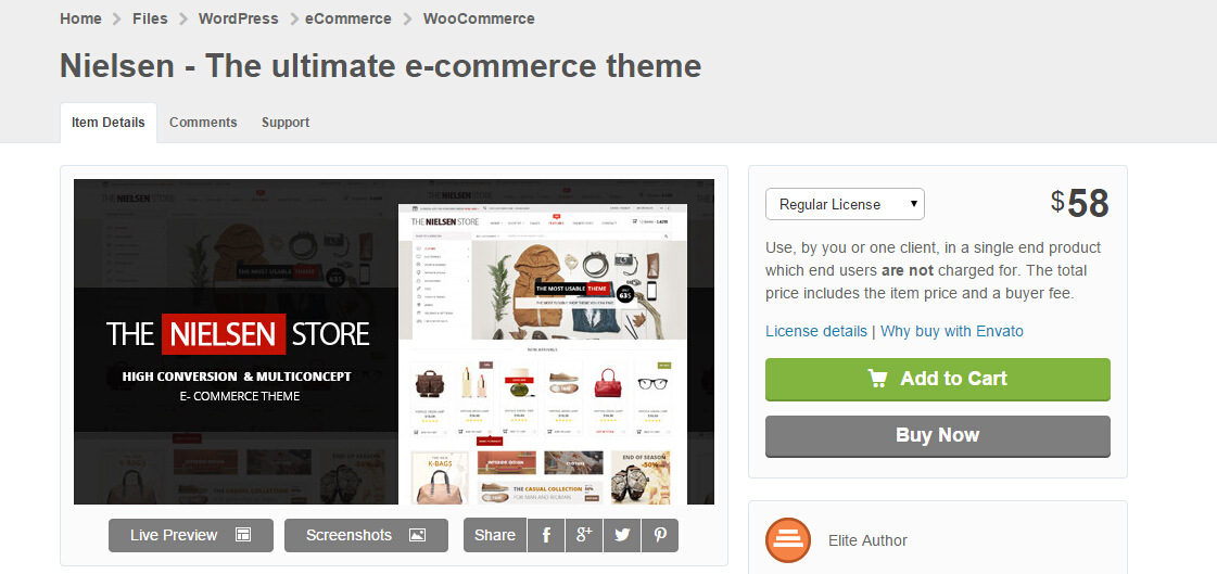 Nielsen这款主题应用在电子商务类型的站点上展现力非常ok。如下图