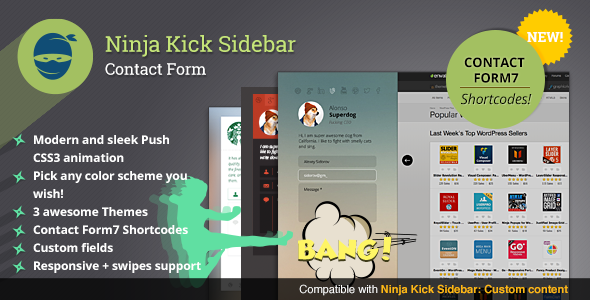 Ninja Kick Sidebar 是一个WordPress插件,增加了接触形式与内容推送的动画效果和清洁您的网站的每个页面的设计。例如:你可以在同一页上,提高用户体验使菜单项与我联系的开放的接触形式。插件使用现代CSS3转换与回退到以上动画如果浏览器不支持JavaScript。的形式是对屏幕大小的变化,以及在移动设备和反应的滑动手势。