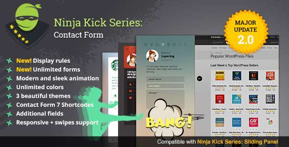Ninja Kick 是是一种优质的表单插件插件,增加了接触形式与推/滑动你的网站的每个网页上的动画效果和简洁的设计。插件使用现代CSS3过渡,有布局响应屏幕大小的变化,可以很好的移动设备和反应上的滑动手势。