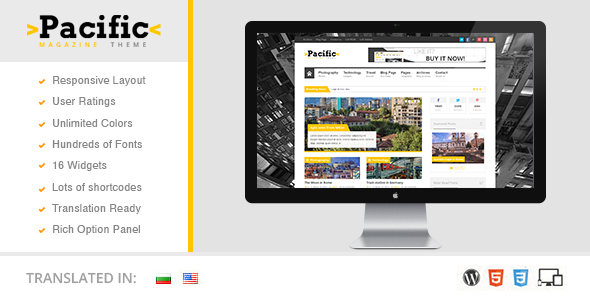 太平洋杂志是一个完全敏感的主题,这意味着它适应装置,它已被视为对屏幕分辨率。您的网站将同样可用好看无论是在大的显示器,笔记本电脑,平板电脑和智能手机观看。
