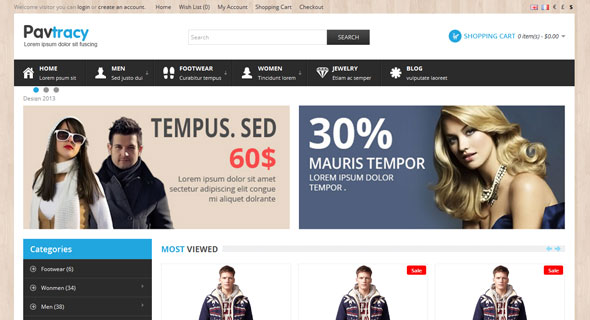 Pav Tracy是美丽的,现代的,时的尚Opencart主题,以快速建立一个电子商务网站的流行时尚,手工,衣店。主题是充分响应,让您的网站看起来不错的所有设备。 Pav Tracy支持多张的主题颜色,灵活的布局系统, JS和CSS压缩(改善你的网站性能) , SEO优化(使您的网站友好的搜索引擎) ,以及新技术: Bootstrap 3, Font Awesome 4, SASS, HTML5 and CSS3.