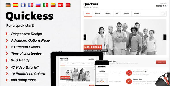 quickess响应公司的WordPress主题是完全适合于企业网站,个人网站和其他网站。以其先进的选项页,便于管理,搜索引擎优化设置是与搜索引擎,它使你在设计你的站点的自由可定制的颜色,可定制的布局,无限的侧边栏,4列,3列或2列过滤和nofilter组合成吨的短码。