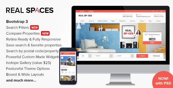 Real Spaces是一个功能强大的WordPress主题设计及房地产,地产代理网站开发,并配备方便的企业或企业网站。