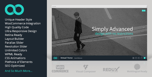 Reload 是一个现代的,独特的和敏感的WordPress主题。这是一个多用途的,跨浏览器兼容的主题与简单,干净的和令人印象深刻的设计。它是基于HTML模板和加载由视觉作曲家和Redux框架。装填主题还提供了两个完全不同的风格,你的页眉的选择和它的100%兼容WooCommerce插件为了轻易造你的在线商店。