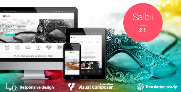 Salbii是一种多用途响应WordPress主题挤满了丰富的视网膜就绪图标,自定义配色方案和各种头选项。主题功能可视化编辑器,LayerSlider,Flex的滑块和NIVO滑块,以及直观的主题选项面板。
