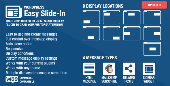 你有你不希望你的观众错过一个特定的消息?你想建立自己的邮件列表,而无需使用恼人的弹出窗口?容易滑入式是适合你的工具。使用Easy卡式您可以完全控制的时候,在哪里以及如何显示给用户的消息通过。