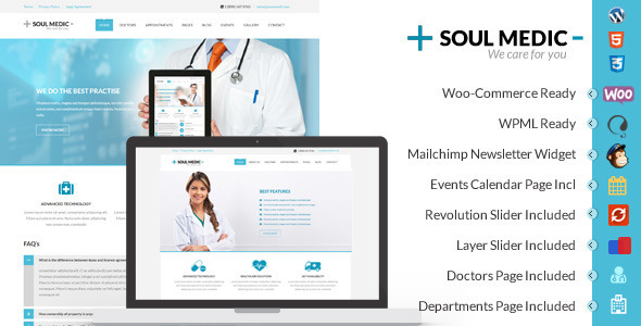 平坦,简约而现代风格的主题与功能丰富的管理面板,快速安装的主题在现有的网站或全新安装。主题具有广泛而独特的盒装布局,既充分响应,并为各种设备和主流浏览器进行了优化。主题装有超过25 +不同的页面布局,如医生,科室,服务,博客与评论,关于页面,事件或时间表的网页,事件详细信息页面,画廊,没有侧边栏,2,3,4列的内容,联系方式,预约等,这是一个最合适的主题为医生,牙医,外科医生,医院,诊所和任何类型的健康和医疗相关的网站。