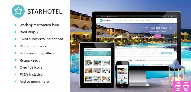 Starhotel v1.5.0 是一种基于引导的WordPress主题酒店预定主题。这不只是适用于宾馆,也为度假胜地,床和早餐,旅馆,汽车旅