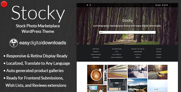 基于WordPress和简易数字下载,Stocky让你卖你的照片一样的任何巨大的在线市场。您不仅可以卖你的产品,但在卖场捆绑可用的扩展,你可以允许任何人上传自己的照片,并通过您的网站销售。
