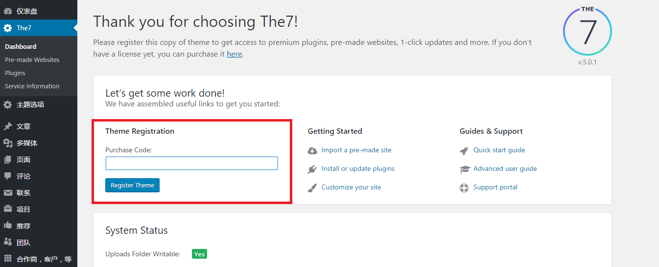 入Purchase Code根本没办法安装插件和导入演示数据,所以这一点The7也开始学习Avada。不过新版本发布时间较短,我们也还没