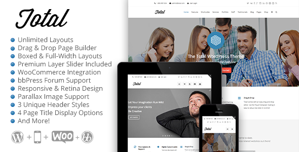 Total是清洁的,现代的和敏感的WordPress主题可定制。主题是考虑–博客,许多不同的生境和行业创造了在线商店,律师,机构,婚礼策划,主持公司,非营利组织和更多。看看我们的一些特定行业的网页的例子得到什么样的魔术总的想法是能够。主题是包装如WooCommerce整合或无限大功能组合的边缘。在价格,也比不上一罐煤气没有理由不得到总今天开始建立你的新网站!